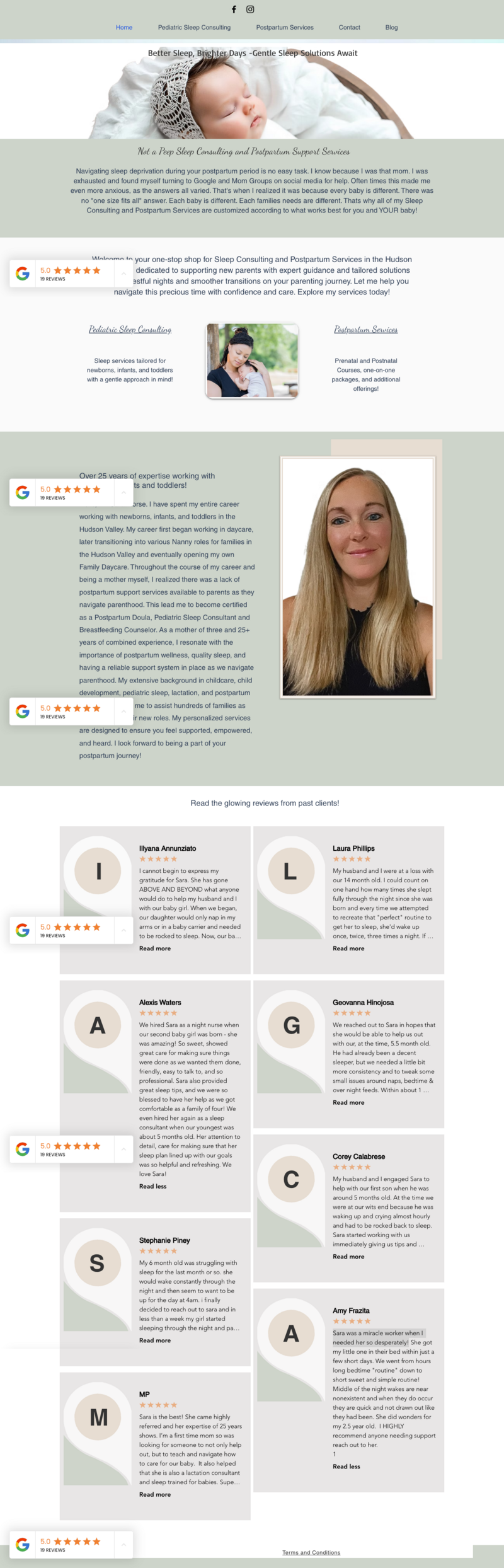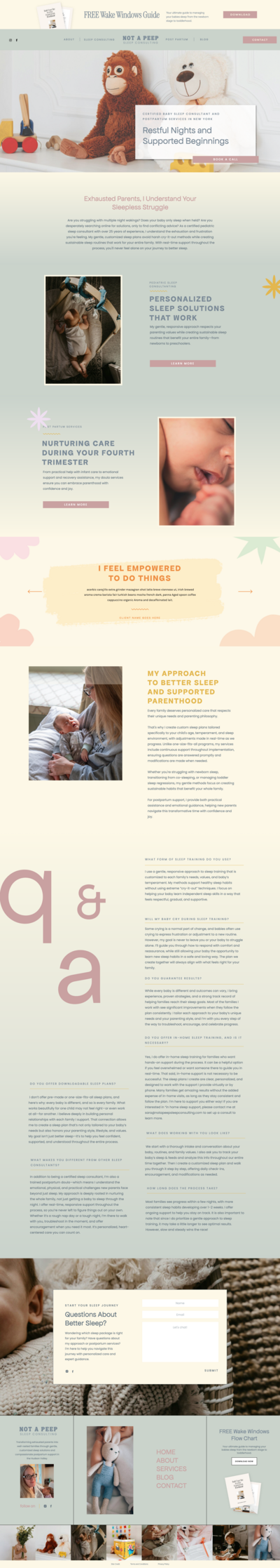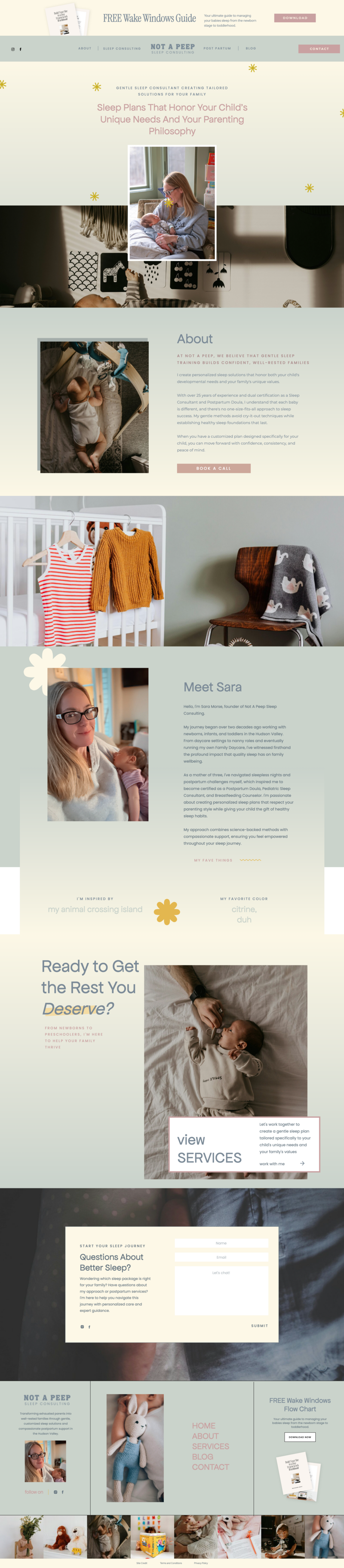 Not a Peep Sleep Consulting, founded by Sara Morse, provides pediatric sleep consulting and postpartum doula services throughout New York and virtually. With over 25 years of experience working with children, Sara helps new parents navigate sleep challenges with gentle, realistic solutions—but her old website wasn’t helping her reach those families online.